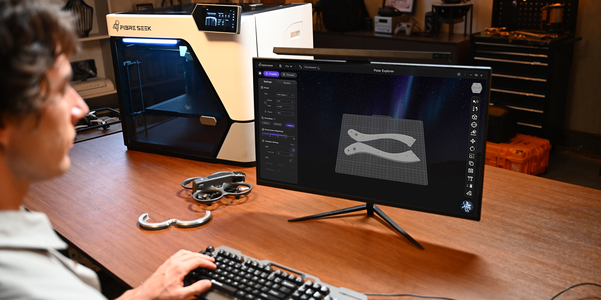Precision continuous fiber slicing with a user-centric interface, fully customizable toolpaths, and native machine integration.”